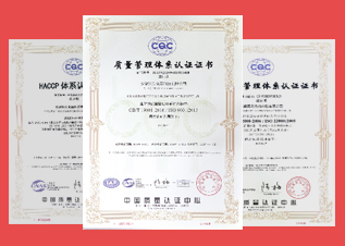 公司順利通過ISO 9001質量管理體系認證、ISO22000食品安全管理體系認證、HACCP體系認證